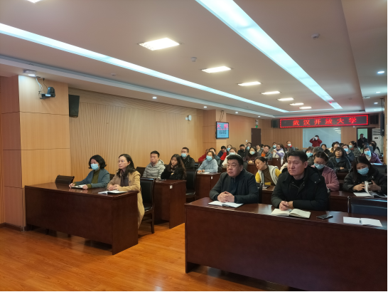 按照国家开放大学《关于组织收看2023年春季学期国家开放大学“开学第一课”的通知》要求,2023年2月27日上午10点,武汉开放大学直属学院全体教职工在学校综合楼8楼视频会议室一同收看了主题为“在践行二十大要求中勤学习善作为”的开学视频直播课。