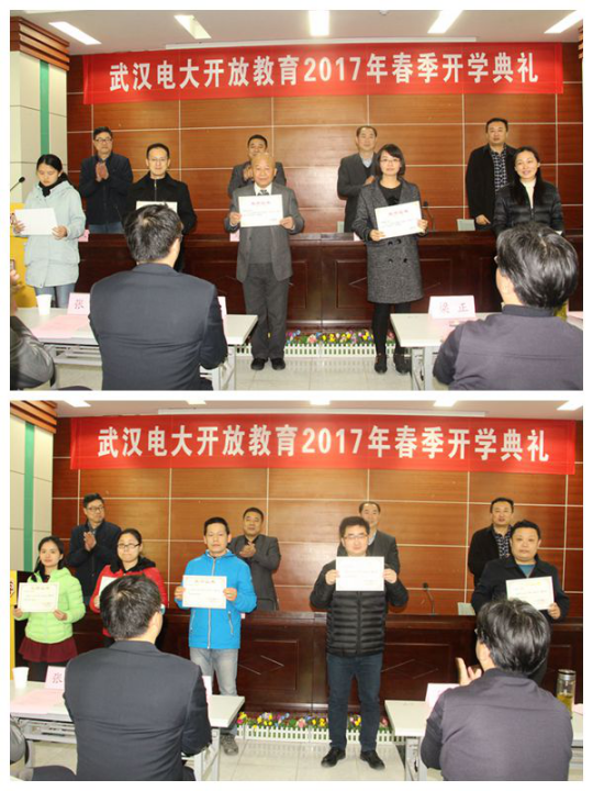 随后,副校长郑瑛宣读了开放教育学院优秀学生和武汉电大优秀毕业生的获奖通报,在欢快激昂的乐曲声中,校领导和林先辉书记为获奖学生代表颁发了证书。