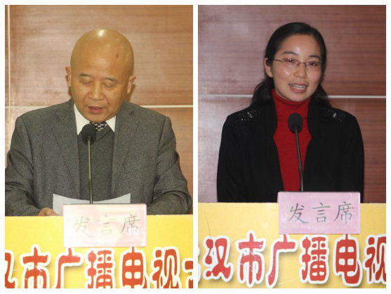 左图为开院优秀学生代表蒋虚怀先生在发言,右图为优秀青年教师代表疏凤芳老师在发言