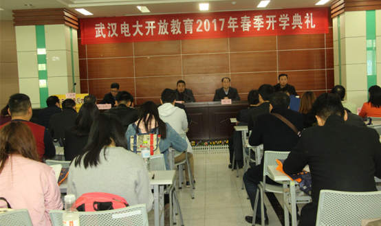 (文/赵绍普 图/黄静)春满江城,草长莺飞。3月26日上午,武汉电大2017年春季开放教育新生开学典礼在汉口校区综合楼二楼多功能厅举行。武汉电大校长马蜂,副校长郑瑛、王路群莅临会场,学校相关职能部门负责人出席开学典礼。开学典礼由开放教育学院党总支书记林先辉主持。
