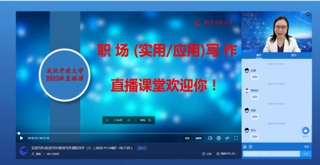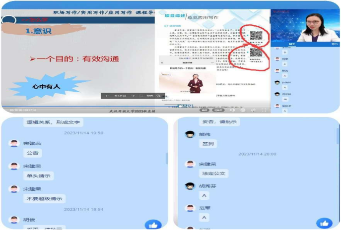 (通讯员:疏凤芳/张霁)11月 14日晚上19:00-19:25和19:35-20:00,我校邹莉教授的职场(实用/应用)写作课程直播开讲,直播的主题是“实用写作/应用写作课程导学”和“请示”。
