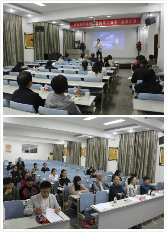 比赛的十余位选手准备充分,他们身着职业装、精神饱满、声情并茂,用充沛的感情讲述了他们不同的学习经历。其中,7号选手蒋双成用丰富的视频照片做背景,饱含深情地讲述了她从一名普通工人成长为一名技术骨干和岗位标兵的求学历程;8号选手蒋虚怀先生是此次比赛年龄最大的选手,虽然年过花甲,依然坚持学习,分享了自己在开放教育学习过程中的体会;14号选手江畅在优美的音乐伴奏下,表达了她对学习的痴迷与享受,抒发了“不忘初心,方得始终”的学习感悟。