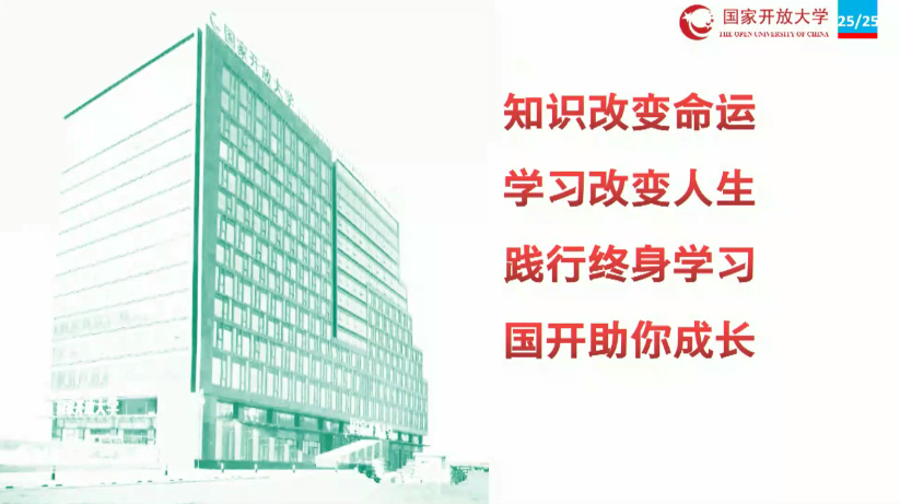 荆书记(校长)指出:爱国是国家开放大学的基因要素。正当新冠肺炎,国开总部、分部和师生风雨同舟、同心同德,谱写了“国开一家人”共克时艰的新篇章。同时贯彻教育部“停课不停学”精神,率先向社会提供多样化的在线学习资源。