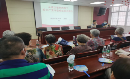 直属学院党支部书记张旋深入基层单位调研,了解到长寿社区党建工作缺乏专业人员,应社区要求邀请直属学院副院长凃明星为长寿社区党员讲授党课《从重庆谈判的细节看共产党夺取政权的必然性》,共同庆祝中国共产党成立101周年。