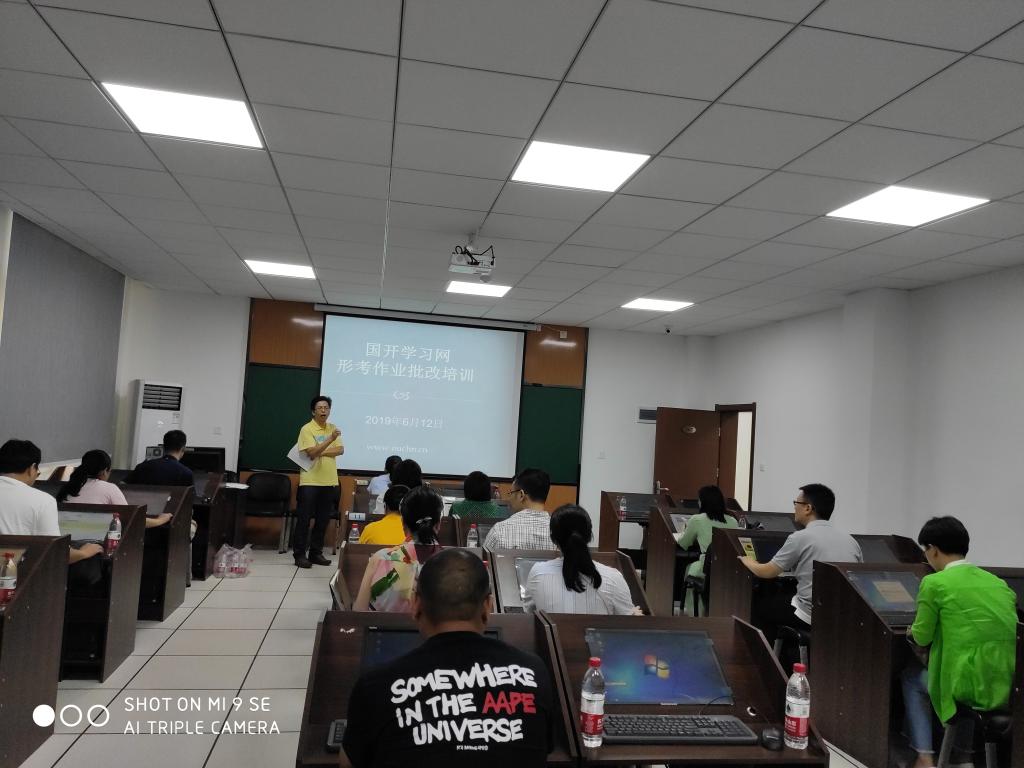 (图 黄静/ 文 刘江山)2019年6月12日下午,开放教育学院组织举办了2019年春季国开学习网形考作业批改培训会。来自各学院、各部门的辅导教师,以及开院部分指导教师参加培训。