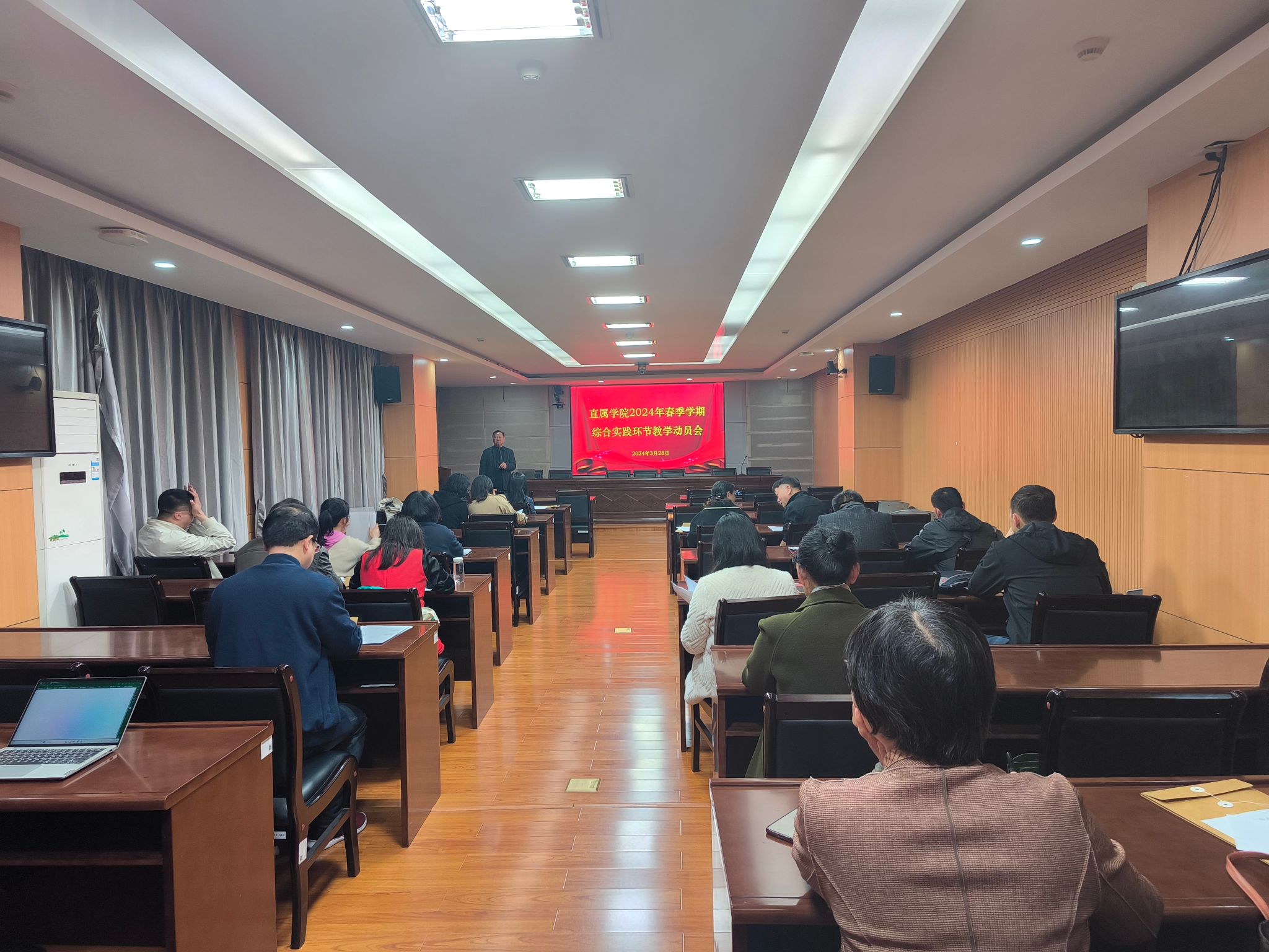 (周丽芬/文 肖驰/图)3月28日下午18:30,直属学院在综合楼8楼会议室组织开展2024春季学期综合实践教学动员会。直属学院院长龚平、直属学院教学科科长疏凤芳、相关教学管理人员以及综合实践指导教师参加了此次会议。