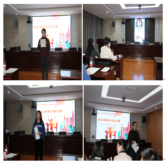 经班主任推荐,报名参加本次比赛的共24名选手。比赛当天,他们衣着得体、精神振奋、自信满满、声情并茂地讲述着他们的爱好、故事、以及学习经历。其中,13号选手鲁玫用纯正的发音,自然的语调,流畅的表达分享了她在加拿大留学的一段真实的回忆。12号选手刘巧梅,既幽默又饱含深情的讲述了一段年幼时的姐妹情。17号选手欧阳珍珍,作为英语专业的学生,分享了她如何与英语结缘,如何在开放教育学习过程中自主学习,享受学习的过程。16号选手余漫,由于工作的原因,比赛不能到场,但是出于对英语的喜爱,对此次活动的热情,她发来了视频,用远程的形式参与了比赛分享了她的学习故事。