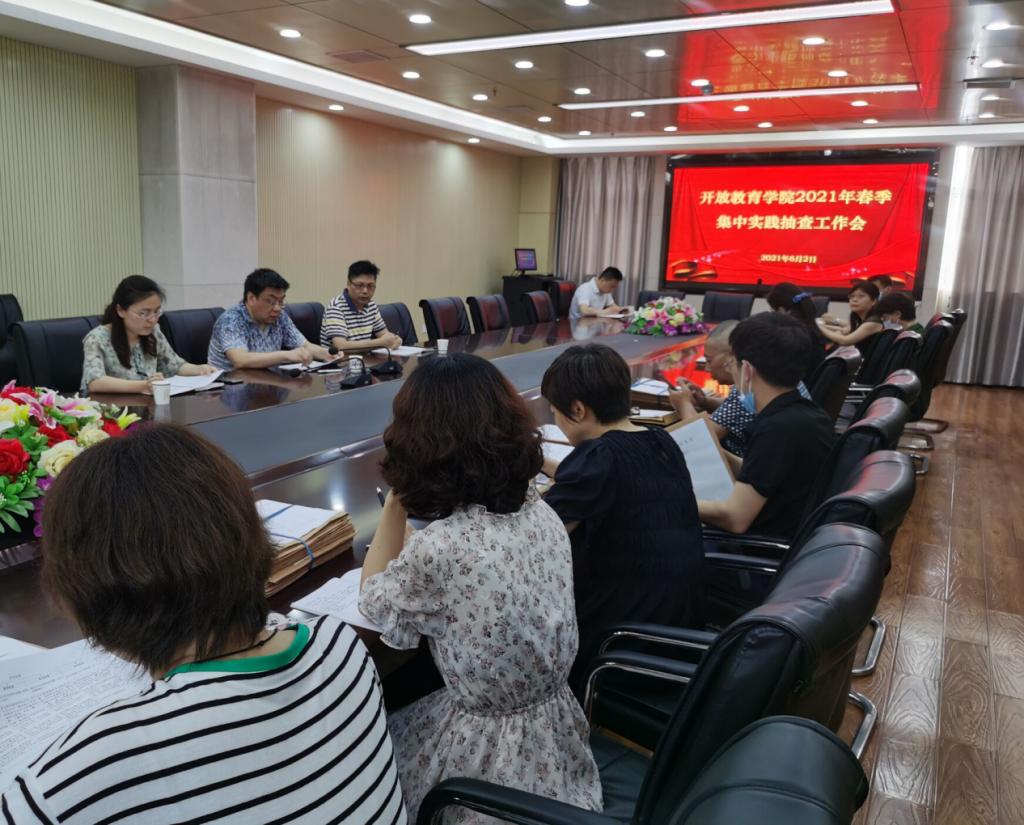 (通讯员:疏凤芳 摄影:周丽芬)6月2日上午9点,开放教育学院在汉口校区综合楼15楼会议室召开2021年春季教学点综合实践教学抽查工作会。开放教育学院院长张旋、副院长凃明星、相关教务管理人员和老师参加了本次会议。