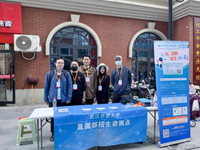 在此基础上,直属学院采取多种举措并行进行招生宣传。一是学院构建了以“武汉开放大学直属学院”微信公众号为主招生宣传平台,并定期发布招生简章及软文;二是利用教职工的微信群,朋友圈等社交平台发布招生信息。三是组织联合多科室成立专门小组走出校门,由招生科长焦文胜带队,分别在人流量驻足较多的江汉人家翠柳街道与新华家园社区设立点位进行招生现场咨询;四是与武软各部门联动,准备开展跨学院合作。