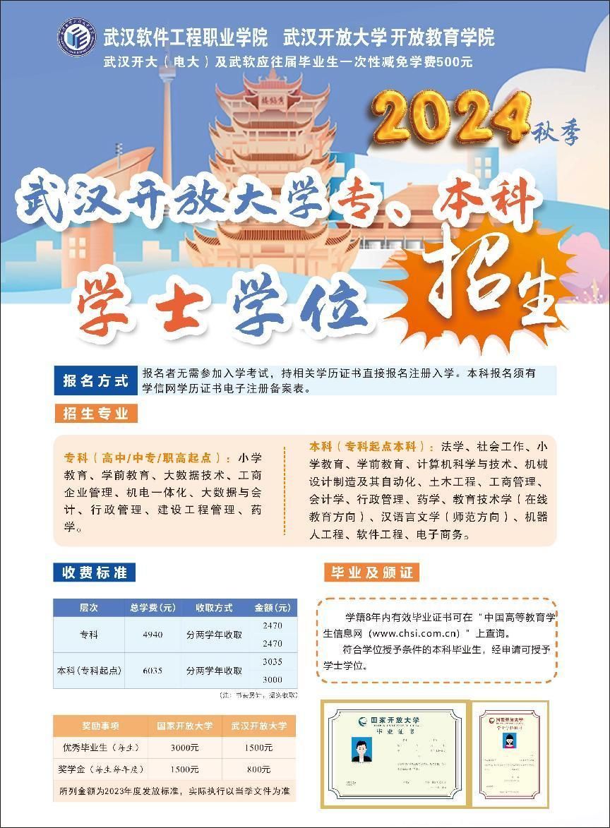 武汉开放大学2024年秋季招生简章