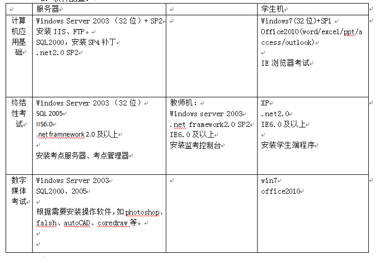 (1)共需2台服务器,分别用于计算机应用基础、终结性考试。