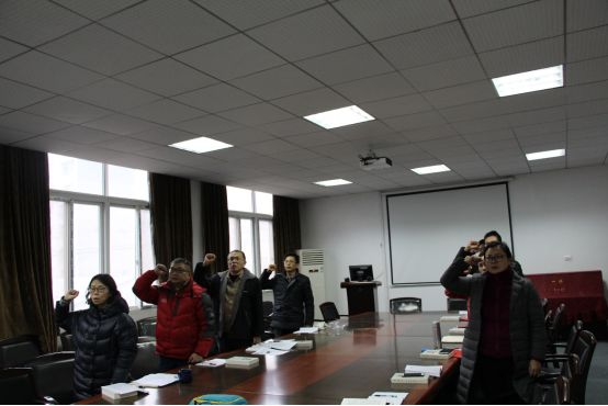 上图为开院全体党员在黄宏领誓下重温入党誓词