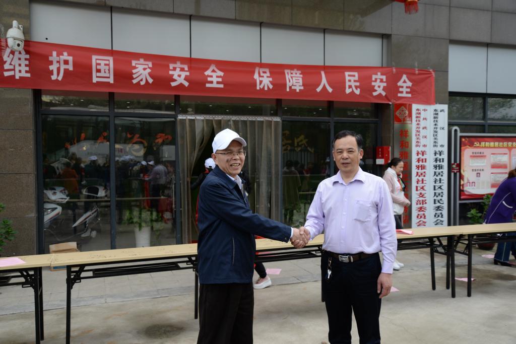 开放教育学院书记何汉平与祥和雅居社区书记李世远亲切握手