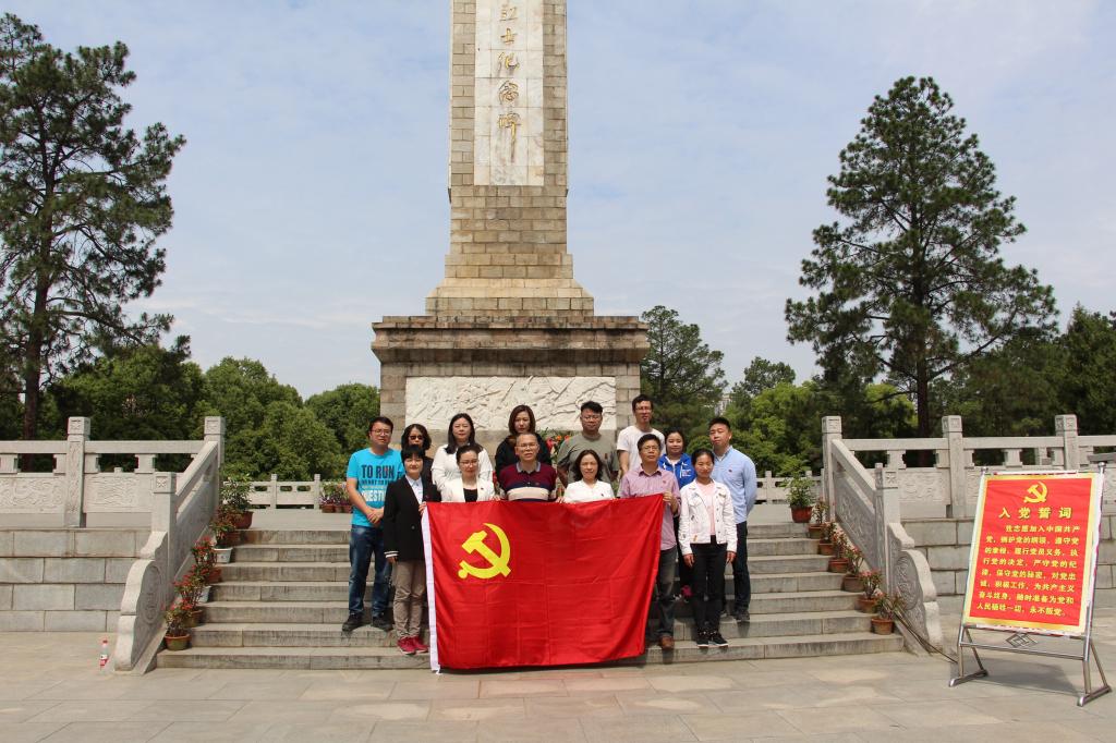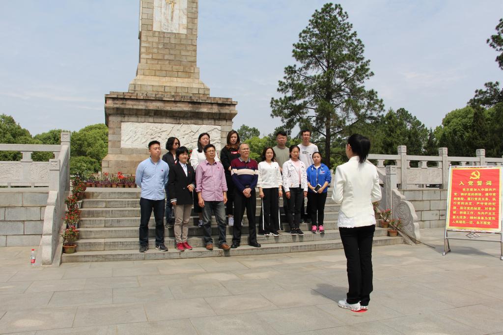 到达麻城以后,在麻城烈士陵园革命烈士纪念碑前,王鹰带领全体党员面对党旗,重温入党誓词。接着,由邹莉为大家讲党课《什么是信仰》。