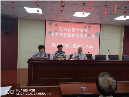 (图/廖洵、肖驰,文/汪萃萃)2019年6月6日上午9点,长寿社区、市电大开放教育学院在长寿社区二楼会议室联合开展“两学一做”学习教育暨“6月支部主题党日”活动。