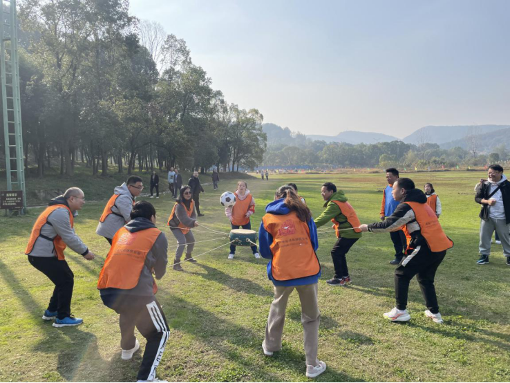 下午,师生素质拓展实践活动在九真山训练基地拉开帷幕。素质拓展训练是一种全面的、系统的教育方式,可以帮助学生间建立良好的信任关系,提高团队协作能力、沟通能力和解决问题的能力。活动开始全体师生随机被分成两队:黄队和绿队。教练通过快速的集队时间、铿锵有力的对话回应、有趣的团队小游戏,一下子就把师生的运动状态调动了起来。在接下来的击鼓颠球、动力圈、借木移舟等活动中,每个队员都是全情投入,群策群力,互助互信,积极沟通,充分发挥团队协作精神,克服重重困难,共同完成每一个项目。