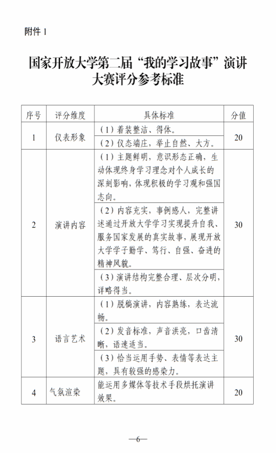 根据国家开放大学《关于开展国家开放大学第二届“我的学习故事”演讲大赛的通知》精神,贯彻落实党的二十大和二十届二中、三中全会精神,全国教育大会精神和习近平总书记关于教育的重要论述,进一步强化学生思想政治教育,展示开放教育学子风采,营造具有开放教育特色的校园文化氛围,学校组织开放教育办学体系师生参加国家开放大学第二届“我的学习故事”演讲大赛。现就此项工作通知如下: