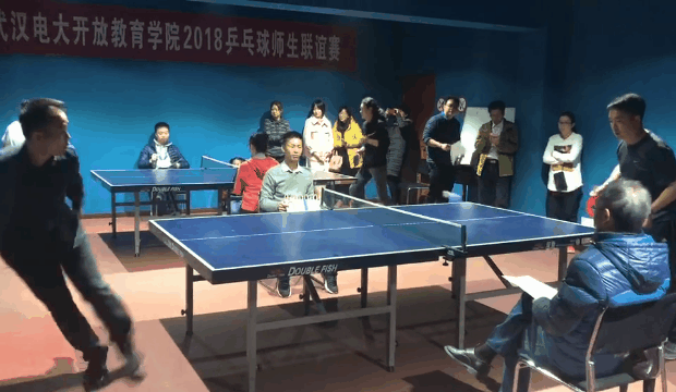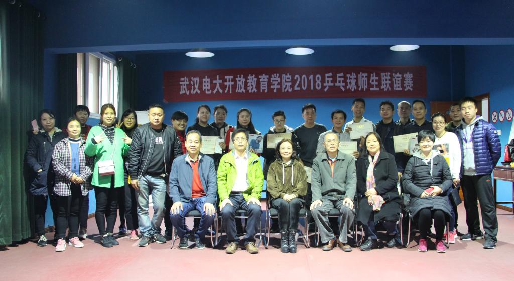 (图/文 廖洵)为了丰富校园文体生活,增强师生身体素质,增进师生之间的沟通交流,开放教育学院于12月2日上午在汉口校区成功举办开放教育学院2018年乒乓球师生联谊赛。学院领导班子成员、教职工以及学生运动员共计40多人参加了此次活动,比赛由教务科汪萃萃科长主持。