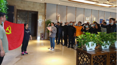 图为支部书记汪萃萃带领网上党组织成员重温入党誓词