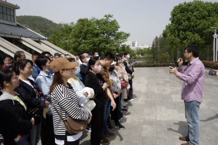 在国防教育馆门前,开放教育学院副院长凃明星为师生上了一堂生动的党课,党课的主要内容是从重庆谈判的细节看共产党得天下的必然性。随后,由班主任李萍组织学生进行了关于国家安全教育知识的有奖问答,现场氛围很活跃。